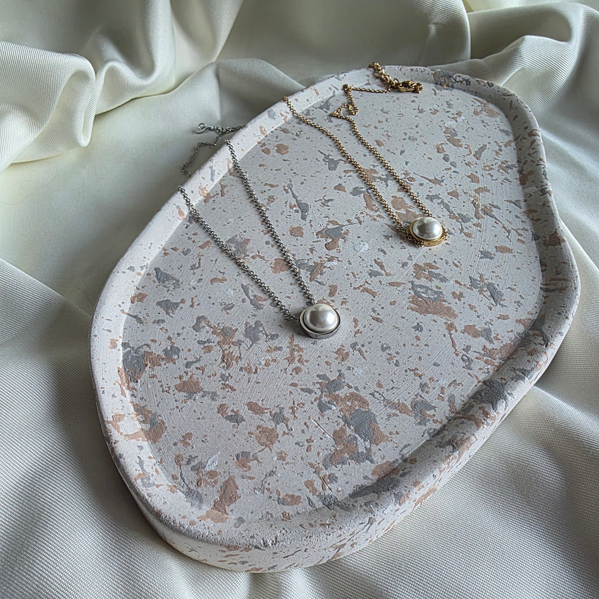 Collier OLGA en acier inoxydable avec perle blanche nacrée.